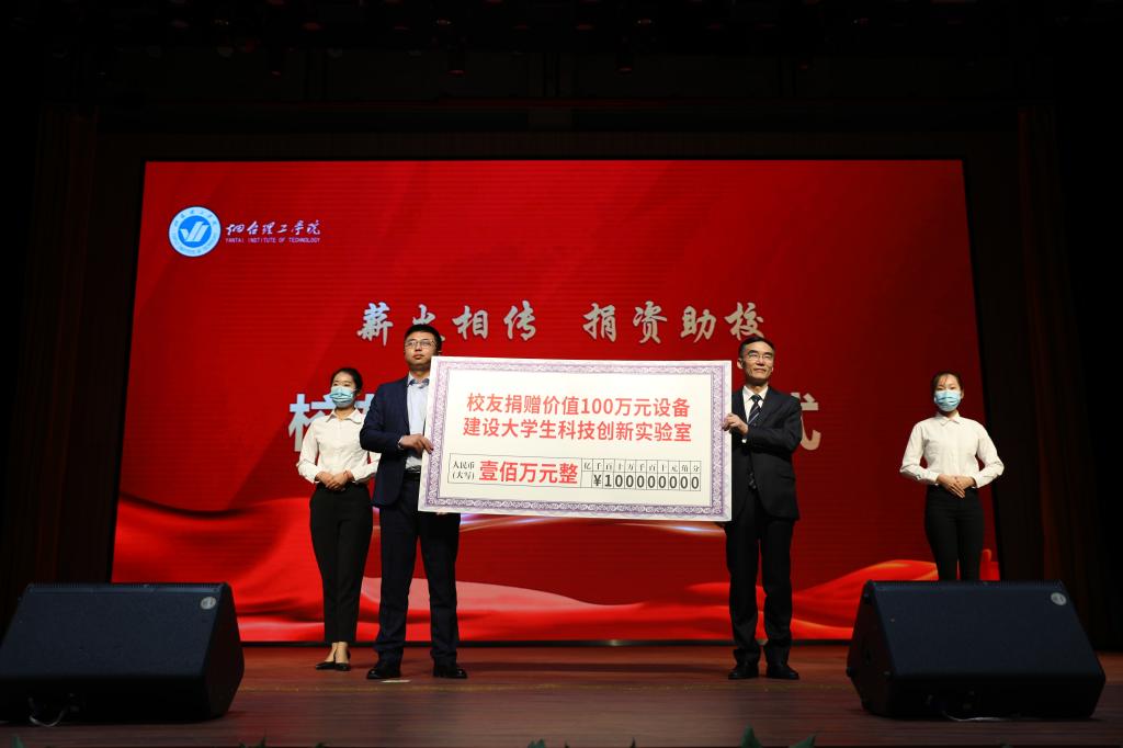 烟台理工学院杰出校友代表宋英豪捐赠仪式于在会上举行。为支持母校教育事业的发展,支持学生们的创新实践活动,宋英豪校友向学校捐赠价值100万元设备建设大学生科技创新实验室。