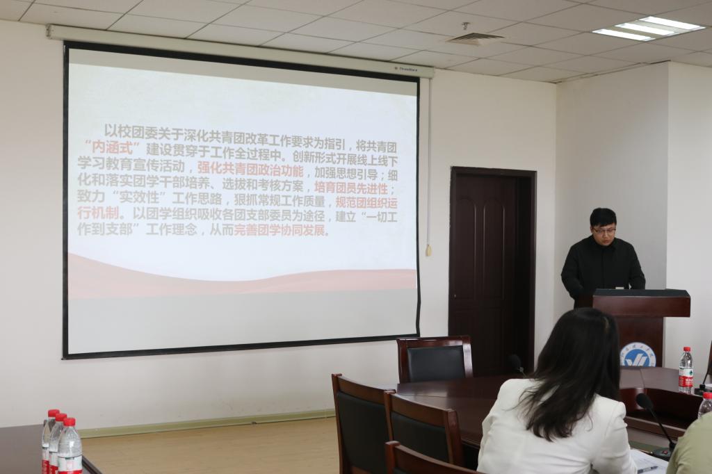 为促进学校共青团工作的交流分享,表彰先进、树立典型,展现各团总支的青春风采,促进各团总支间的交流学习,进一步扩大团组织的覆盖面和影响力,4月29日上午,校团委在二教六楼会议室举行了2020年度五四红旗团总支答辩会。副校长张仁杰,组织统战部部长张琼玉,党委宣传部部长杨帆,学生处处长杜娟,各学院党总支书记及团总支书记出席此次活动,会议由校团委书记申海滨主持。