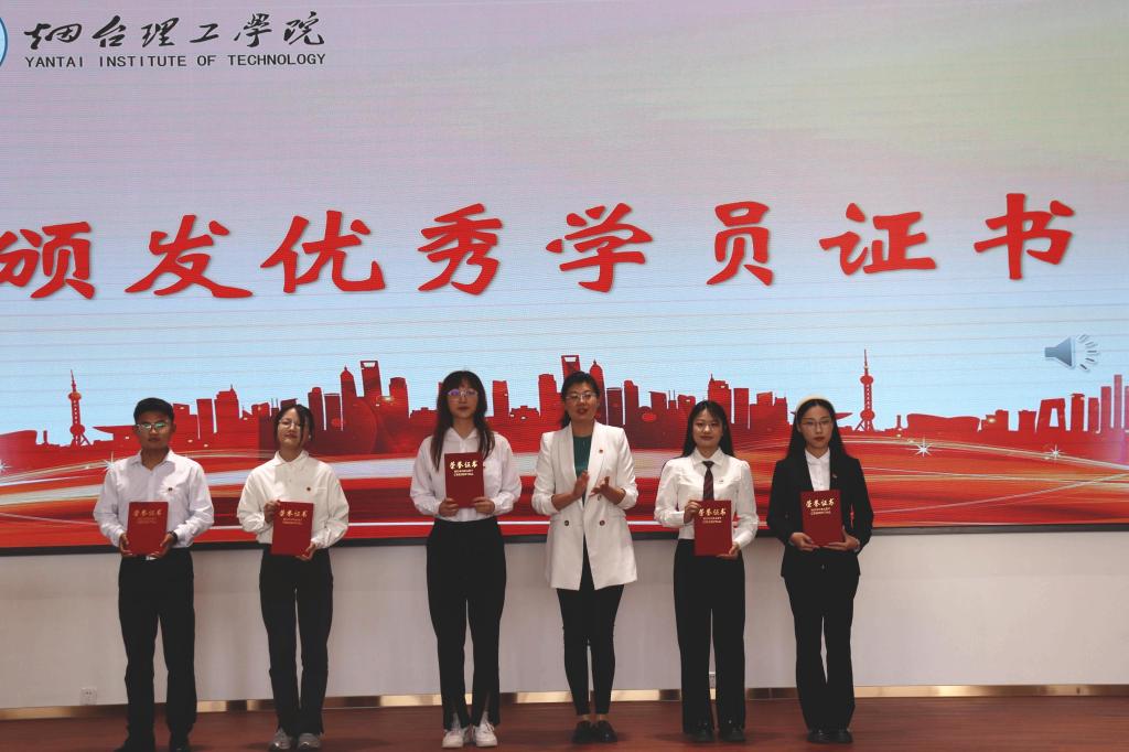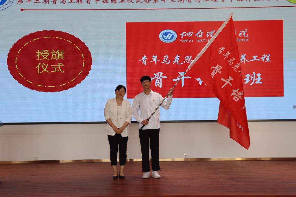 仪式在庄严的国歌声中正式开始。首先通过视频回顾了第十二期青马工程骨干班一年来的学习、实践及取得的成果。马克思主义学院副院长邵菊欣为第十二期青马工程38名培训合格学员颁发结业证书;校团委书记申海滨为5名优秀学员颁发荣誉证书。