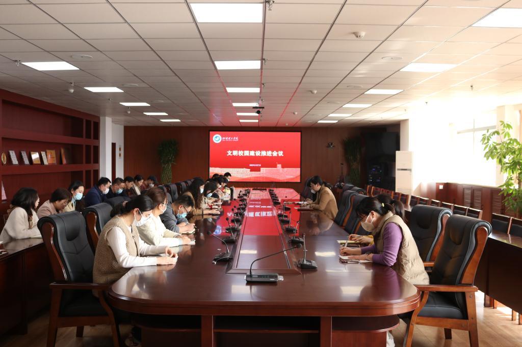 3月7日下午,我校在综合楼六楼视频会议室召开文明校园建设工作推进会。校长助理李洁,各二级单位文明校园建设负责人参加会议,会议由党委宣传部部长杨帆主持。