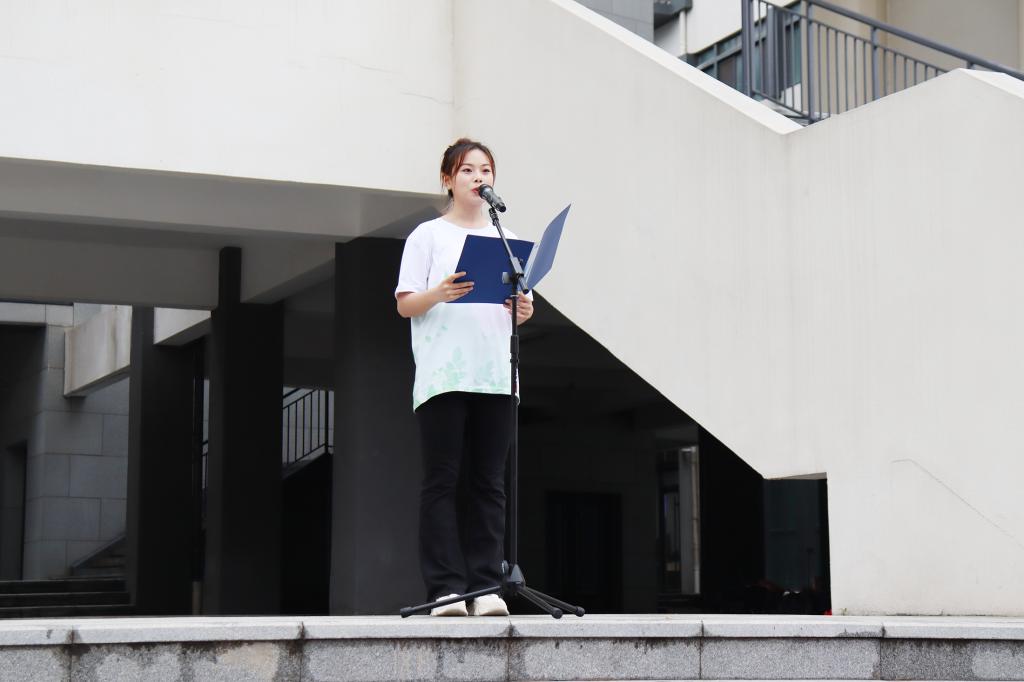 校长助理杜娟做动员讲话。对实践团队提出三点希望:一是希望各实践团队树立“安全第一”的意识,加强安全教育,确保实践活动安全有序;二是希望同学们充分发挥专业优势和特长,服务群众、奉献社会;三是拓展渠道,整合资源,善于总结,凝练宣传实践成果。随后对即将奔赴祖国各地开展社会实践的团队表达亲切的问候和衷心的祝愿,希望大家团结奋进,再创佳绩。最后宣布烟台理工学院2023年大学生暑期“三下乡”社会实践团队正式出征。