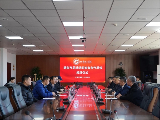 12月3日,烟台市足球运动协会与烟台理工学院合作单位授牌仪式在综合楼视频会议室举行,市体育局副局长孙俊成,市足球协会会长王洪波,市足球协会副会长曲洪刚、郑卫国,市足球协会副会长兼秘书长郝忠波,烟台理工学院校长于光辉,校长助理杜娟出席会议。