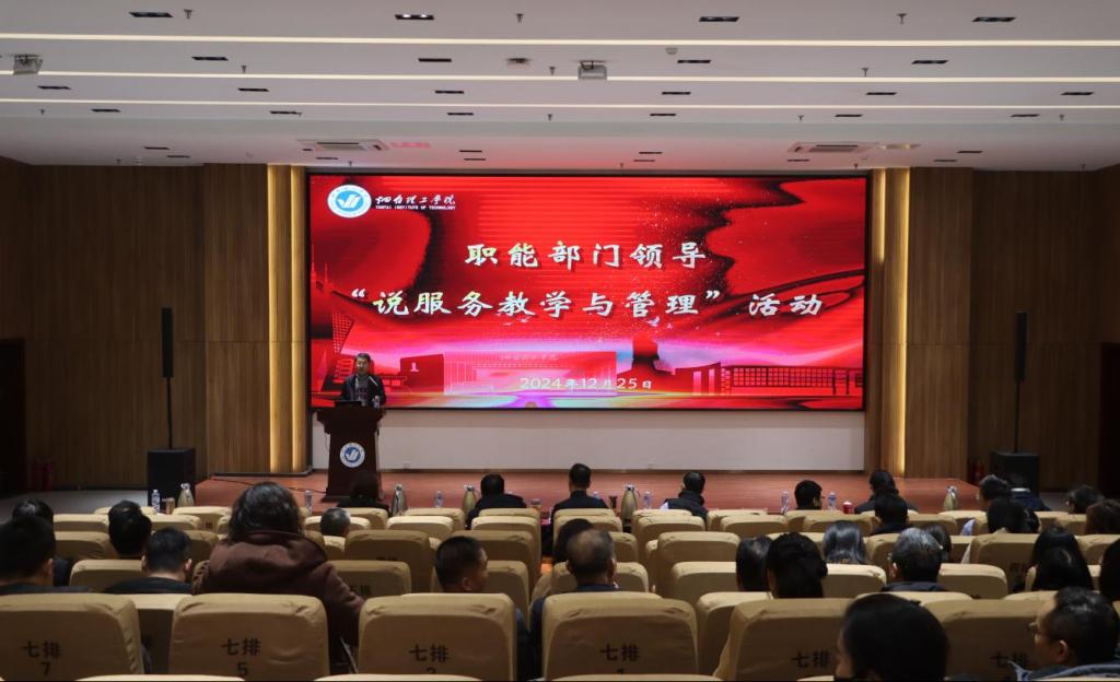 12月25日,学校在综合楼六楼报告厅举办职能部门领导“说服务教学与管理”活动。全体校领导,合格评估专家、各职能部门负责人、各二级学院(部)党政负责人、学科专业带头人等与会。活动由副校长徐世艾主持。