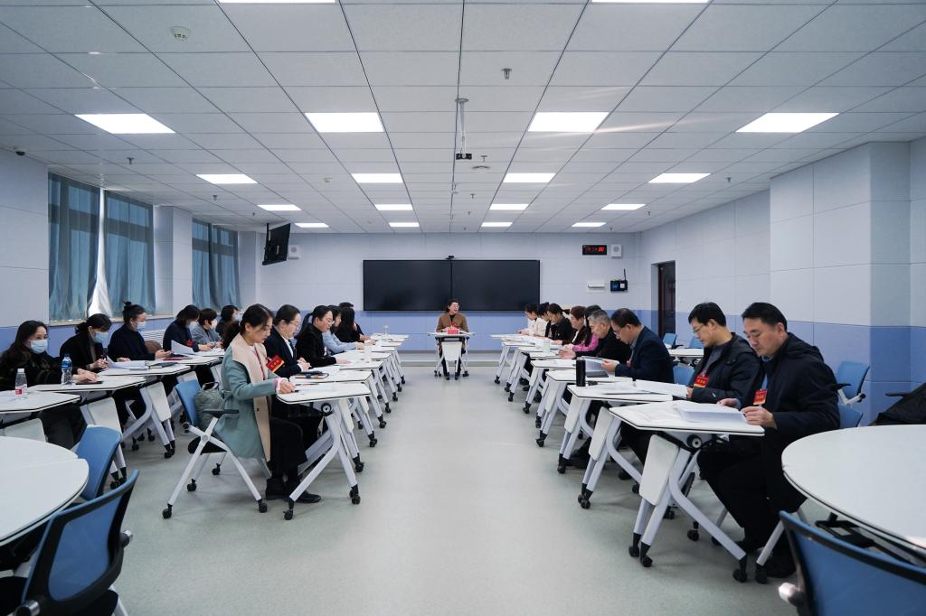 开幕式后,四个代表团到分会场讨论审议学校工作报告,大家对标年度重点工作和目标任务,立足岗位实际纷纷建言献策,在热烈的气氛中凝聚了共识。下午四点,各代表团团长在综合楼六楼报告厅汇报了代表团讨论的意见建议。