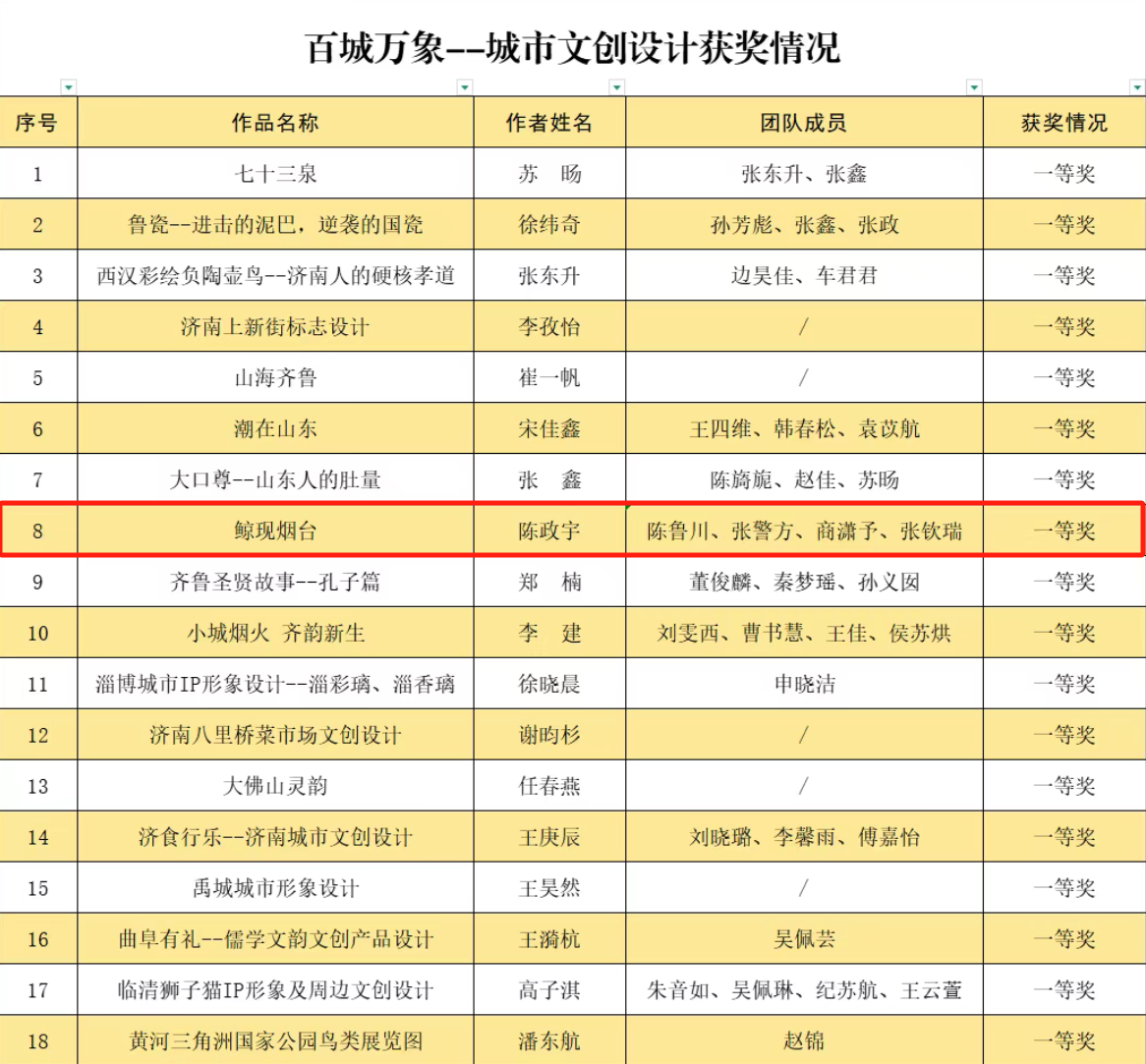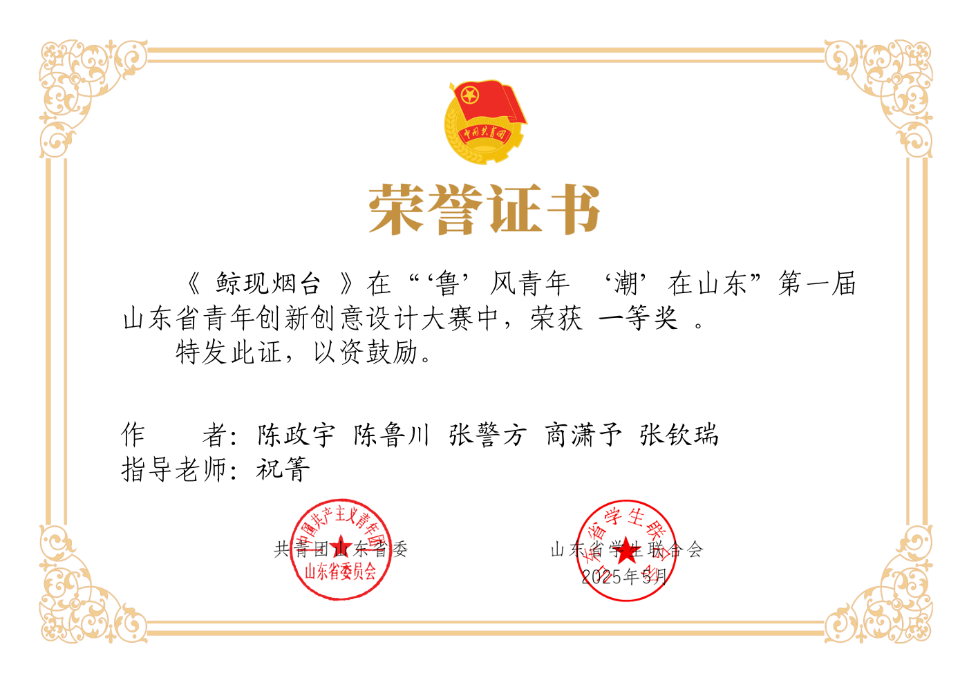 5月10日,首届山东省青年创新创意设计大赛在菏泽市落下帷幕,信息工程学院推报的《鲸现烟台》城市文创作品荣获一等奖。