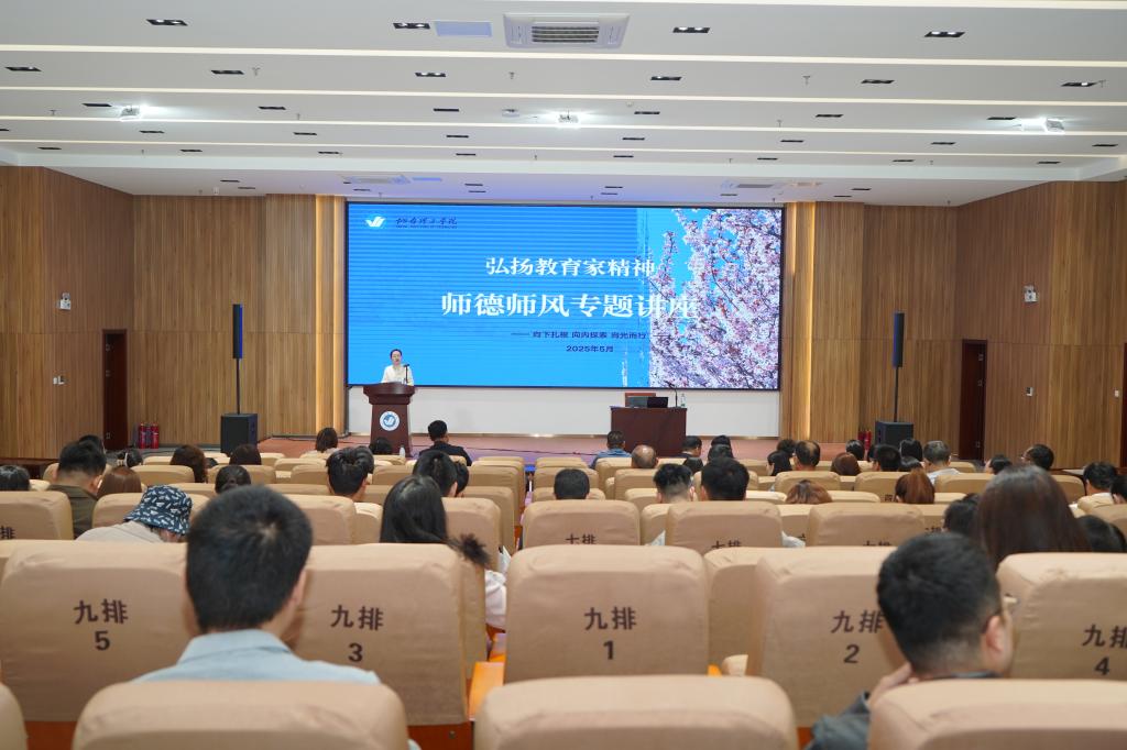 5月23日上午,烟台理工学院“弘扬教育家精神”师德师风专题讲座于综合楼六楼报告厅举办。齐鲁名师、山东省教育科研工作先进个人孙娇老师担任主讲嘉宾,全校教师代表共同参与,共赴一场教育初心与育人使命的思想盛宴。党委宣传部、教师工作部副部长赵蓓主持。