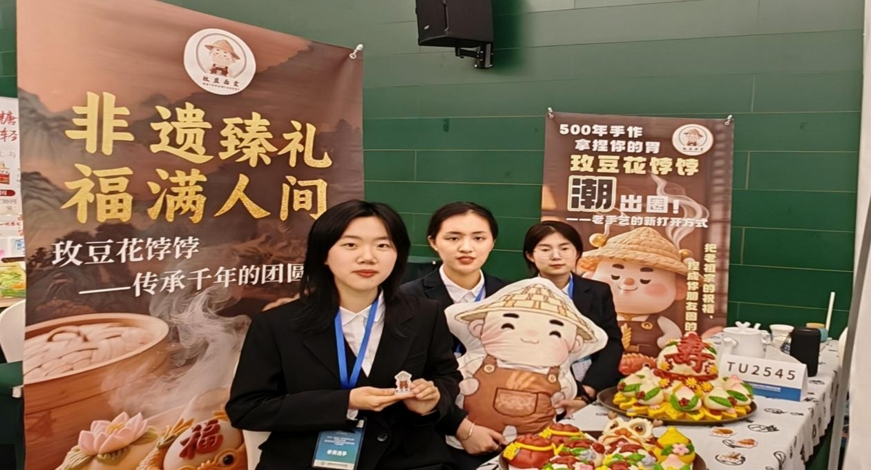 在展洽会环节现场,卫子华、于鑫彤、张羽佳同学化身品牌“推介官”,通过现场模拟品牌推广场景,与其他参赛队伍展开深度互动。她们以通俗易懂的语言解读策划方案的商业价值,结合实物展示、情景模拟等形式,让抽象的品牌策略具象化、可感知,成功吸引了众多目光,最终在展洽会评比中脱颖而出。这一成绩不仅是对团队策划成果的市场验证,更彰显了其方案的落地可行性与商业潜力。