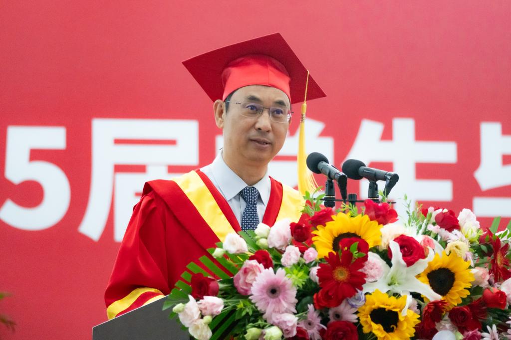 于光辉深情勉励同学们“不要慌,太阳下山有月光”,“人生不是结果的堆砌,而是过程的绽放”。无论将来是乘长风破万里浪,还是守一隅静待花开,都请享受每一段过程所带来的独特风景。他寄语广大毕业生,要厚植家国情怀,勇担时代重任,以涓滴“小我”成就澎湃“大我”,让个人价值在为国家为人民的奉献中焕发绚丽光彩;要提升终身学习能力,永葆创新活力,见微知著、理性思考,让求知欲成为对抗熵增的永动机,在时代变局中赢得发展的主动权制胜权;要培养抗逆生长韧性,努力超越自我,眼中有光、脚下有路,在困境中沉淀力量,在挫折中寻找通途,在奋斗中不断拉近理想与现实的距离,和光同尘、与时舒卷。