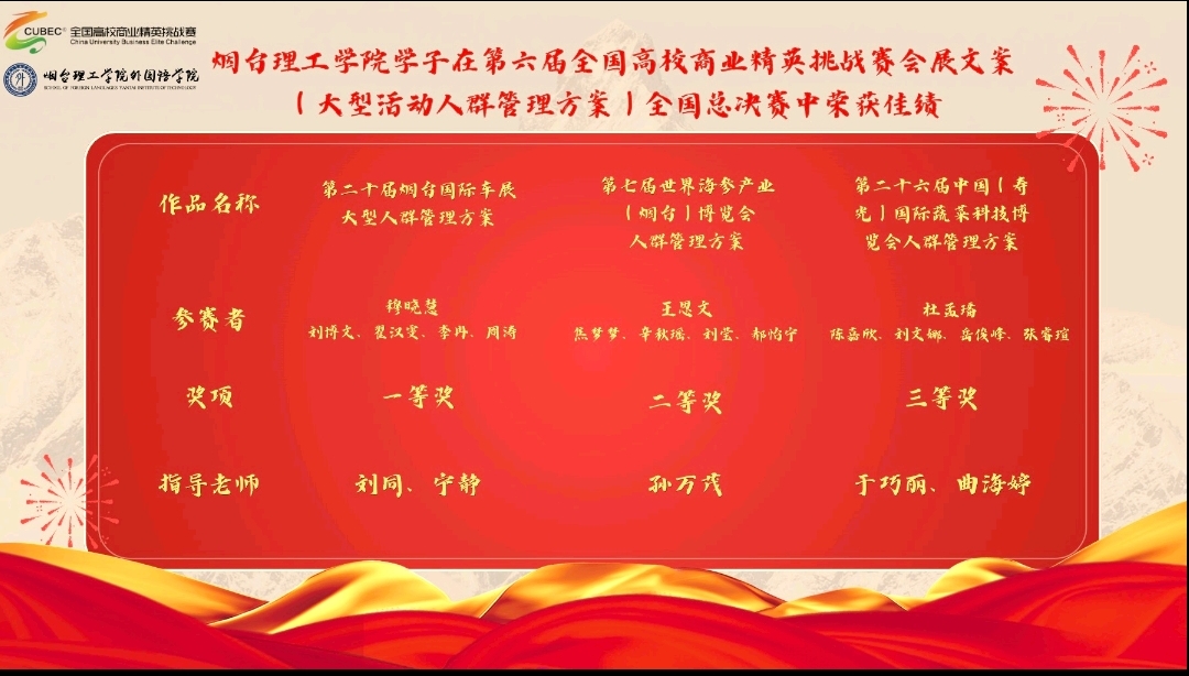 近日,第六届全国高校商业精英挑战赛会展文案(大型活动人群管理方案)创作竞赛全国总决赛圆满落幕。根据中国国际贸易促进委员会商业行业委员会与中国国际商会商业行业商会发布的《关于举办第六届全国高校商业精英挑战赛会展文案(大型活动人群管理方案)创作竞赛的函》(商贸促字〔2025〕66号),本届赛事吸引了来自全国26个省、自治区、直辖市的186所高校、398支队伍参赛。经过省赛选拔、组委会初评、专家复评及终审环节,最终共有133所高校、262支队伍、1800余名师生入围全国总决赛。
