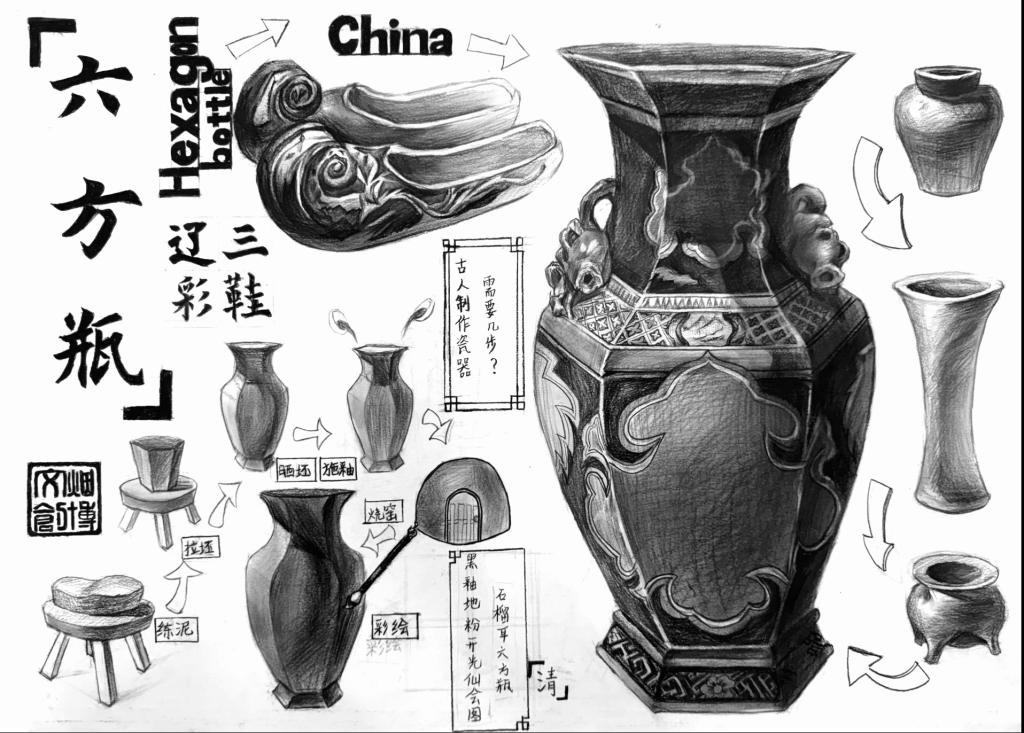 王一然《六方瓶创意素描》