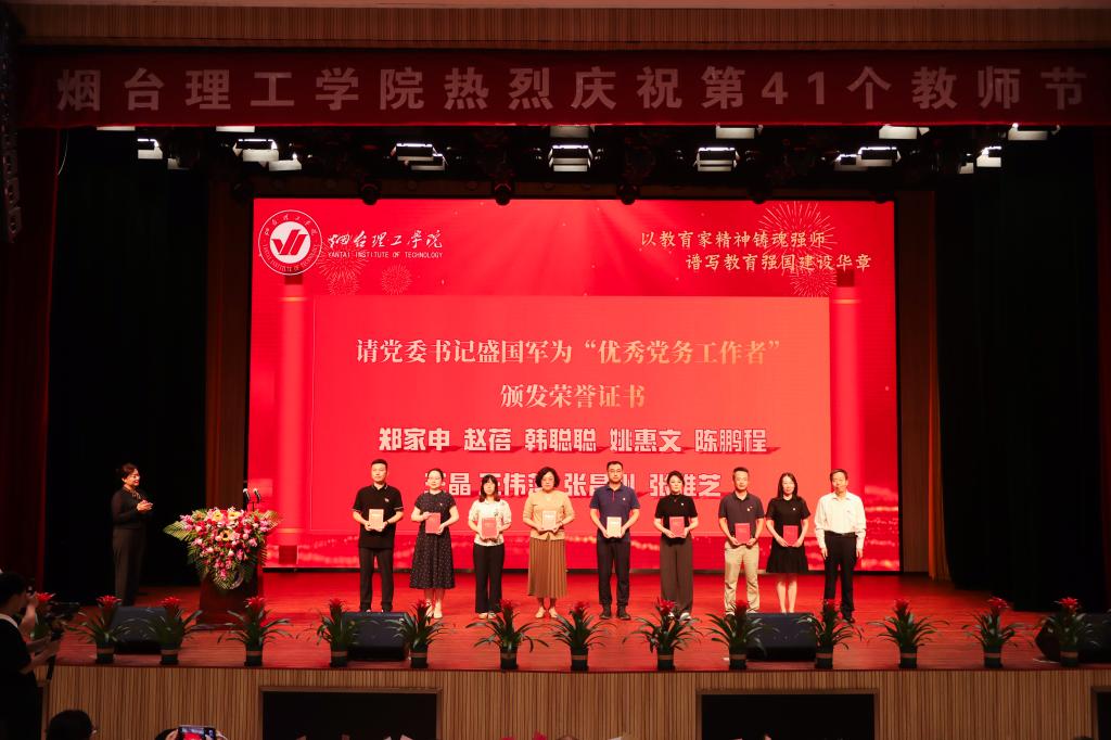 9月9日,在第41个教师节来临之际,烟台理工学院2025年教师节庆祝大会在综合楼一楼多功能厅举行。董事长辛军、校长于光辉、董事会秘书长徐荣哲、党委书记盛国军等校领导出席大会,与全校教职员工共同庆祝属于教师的光荣节日。会议由校长助理李洁主持。