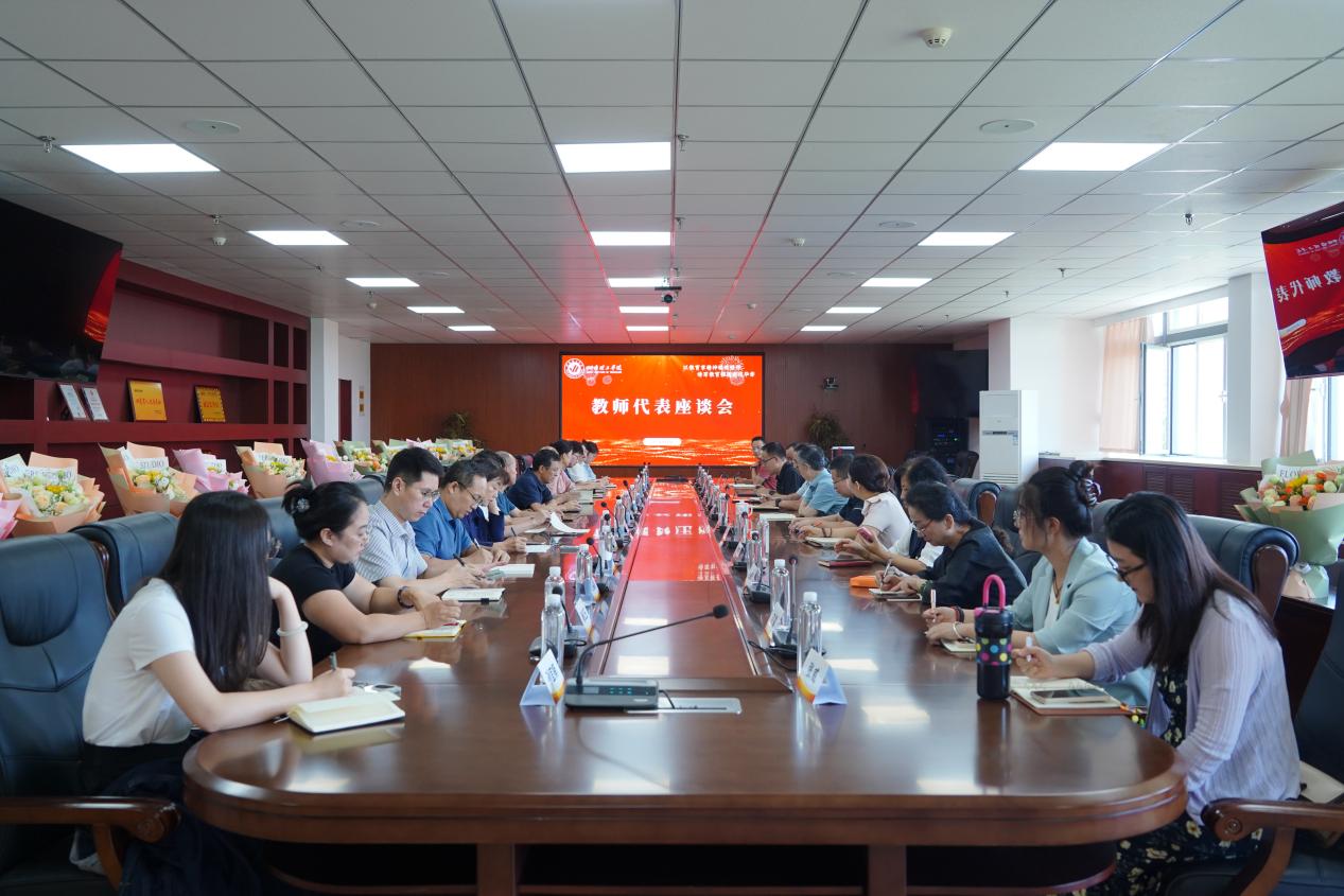 学校办公室、教务处、科研处、人事处、教师教学发展中心、资产与设备管理处等职能部门负责人参加座谈会,并与教师代表进行细致交流。