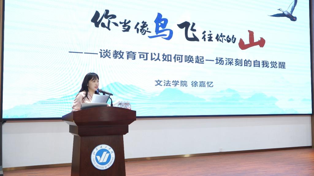 文法学院法律系主任吴淑霞以《新时代师德师风内容解读》为主题做了分享,引导教师知行合一、实践育人,做好学生的引路人。文法学院徐嘉忆老师以《你当像鸟飞往你的山》为主题,结合自身教学经验和工作经历,从不同的方面讲述了书籍带来的感悟与体会。