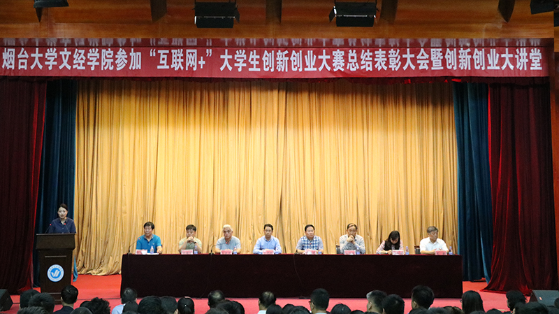 会上宣读了《关于表彰奖励参加山东省第三届“互联网+”大学生创新创业大赛获奖项目的决定》与《关于表彰奖励烟台大学文经学院首届“互联网+”大学生创新创业大赛获奖项目的决定》,表彰了我院在山东省第三届“互联网+”大学生创新创业大赛中获铜奖的《科普航天共享培训平台》《i生活-校园服务平台》《闪付派-聚合支付》项目,及我院首届“互联网+”大学生创新创业大赛金奖3项,银奖6项,铜奖9项,优秀奖5项,最佳创意奖1项,最具商业价值奖1项,最佳带动就业奖1项,优秀组织奖3个和优秀指导教师14人。