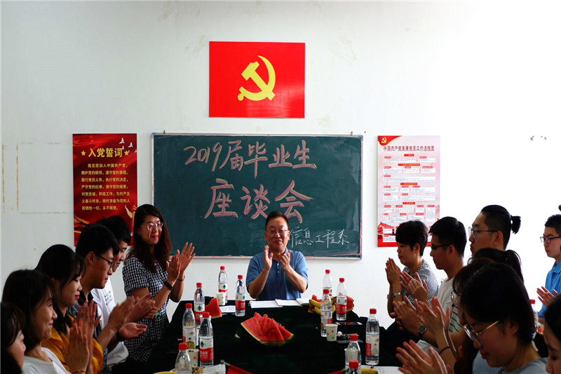 6月13日上午,信息工程系在2教A618会议室召开2019届毕业生座谈会,信工系主任宋宜斌、团总支书记祝箐、副书记张雅芝、教务员邹晓宁、辅导员赵怡、姚惠文及三十多名毕业生代表参加座谈会。听取毕业生关于学院及信工系工作意见和建议,并为毕业生送上美好的祝福。会议由党总支副书记申海滨主持。