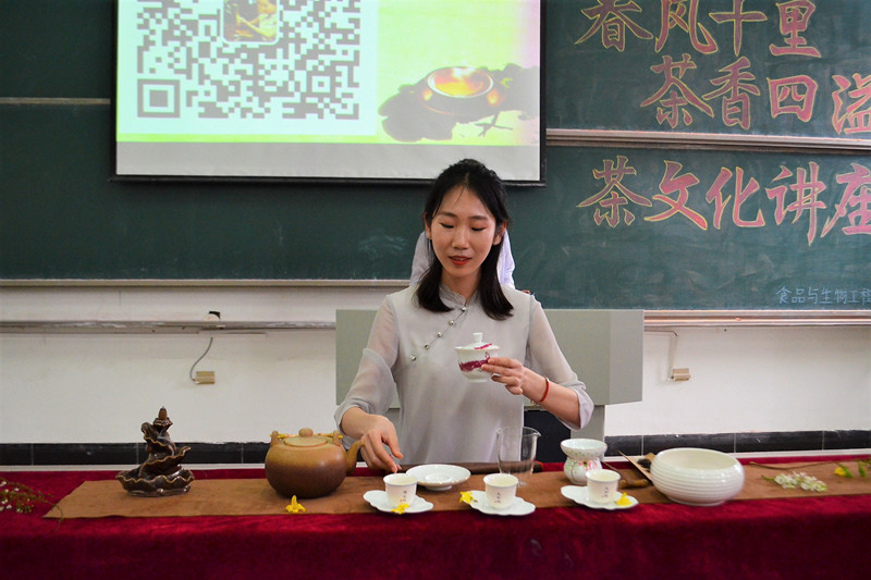 本次讲座旨在丰富食品系学子校园文化生活,激发食品系学生的热情与活力,感受中国茶道的优雅,闲适,淡然的精神气质,品味茶文化的独特魅力,感知并传承中国优秀传统文化。(责编:李林蔚)