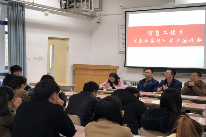 为提高实践教学环节的质量,加强学生毕业实习满意度,11月8日下午,信息工程系于二教510教室召开2015级专业实习座谈会,信息工程系主任宋宜斌、副主任原帅,计算机教研室主任高慧,通信教研室主任刘美娟,15级学生代表参加本次座谈会,会议特邀杰瑞教育教育副总经理李东阳来到现场。副主任原帅主持会议。
