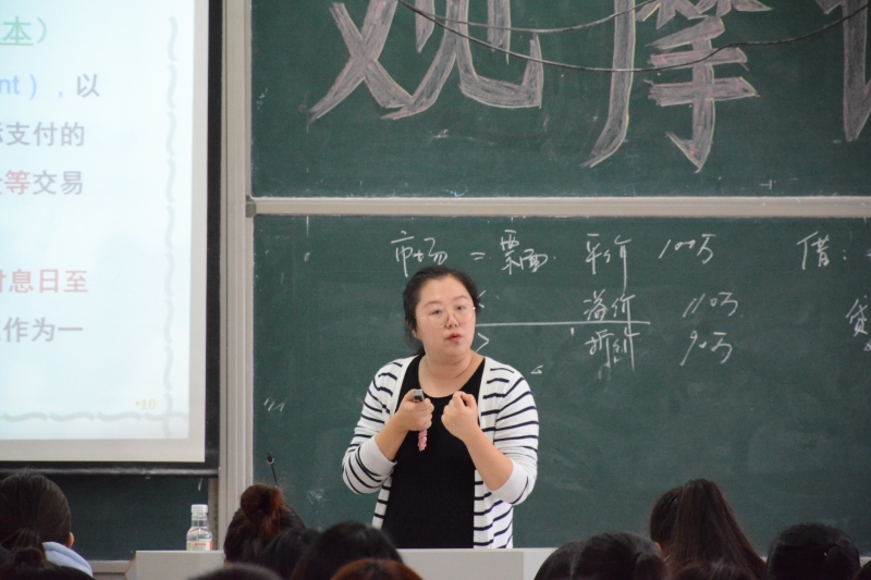 为交流课堂教学活动有效组织和实施的经验,发挥优秀教师的模范带头作用,11月8日上午,会计系于二教405教室举办由优秀教师王蕾主讲的《中级财务会计》课程的教学观摩课活动。