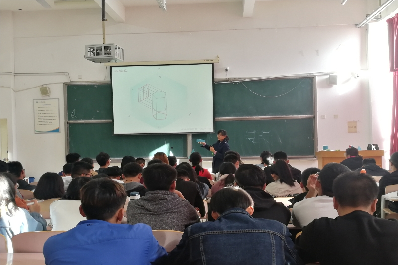 袁老师的多媒体课件图文并茂,并辅助动画演示,详细讲述了平面立体的投影画法及绘图技巧。她讲课具有亲和力,语言表达准确、授课内容熟练,课件图例形象直观、与课堂教学内容契合得较好,课堂教学的各环节安排得当。另外,为了便于学生理解,袁老师采用实物模型教学的方法,将抽象的图形直观,明了的展现给同学,极大地调动了学生学习的积极性。观摩课师生互动良好,课堂气氛活跃,授课极富感染力,教学效果良好。