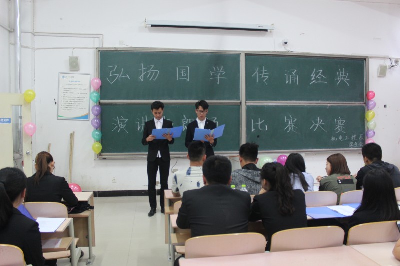 为了加强中华优秀传统文化教育,进一步提高广大同学的人文素质,自觉践行社会主义核心价值观,521日下午,机电工程系二教111举办“弘扬国学,传颂经典”系列活动之演讲与朗诵比赛决赛。机电工程系团总支书记刘春强及部分学生代表参加了此次活动。