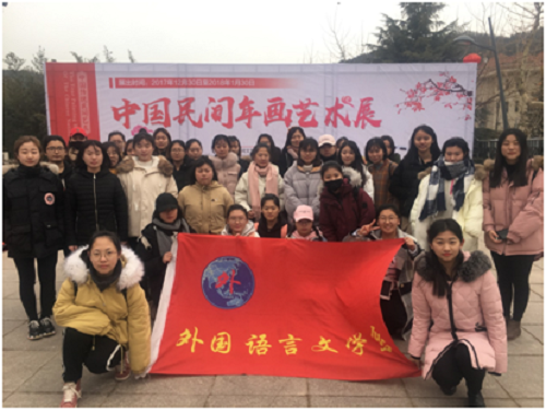 为弘扬中华民族传统文化,增强文化自信,12月30日,外语系党支部书记张廷国、团总支书记温少斐、辅导员魏伟带领外语系学子参加“中国民间年画艺术展”的开幕式活动,并进行了外语系志愿服务基地揭牌仪式。