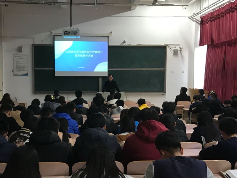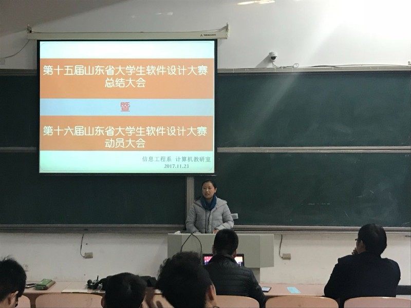 为提高大学生动手和编程能力,进一步增强大学生对专业的热爱和学习能力的提升,动员同学们积极参加第十六届山东省大学生软件设计大赛,11月23日,由信息工程系计算机教研室主办的山东省大学生软件大赛总结暨动员大会于二教110举行。由计算机教研室主任高慧老师,曾庆尚老师及第十五届参赛选手代表,16、17级计算机专业全体学生参加此次大会。