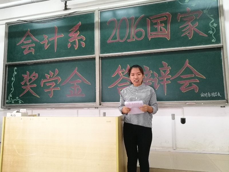 为展现会计学子良好的学习风貌,确保国家奖学金评审工作的顺利开展,2016年10月16日上午,会计系于一教517成功举办了2016国家奖学金答辩会。会计系党支部副书记赵蓓、辅导员纪靖欣以及15级学生班主任参加本次会议。