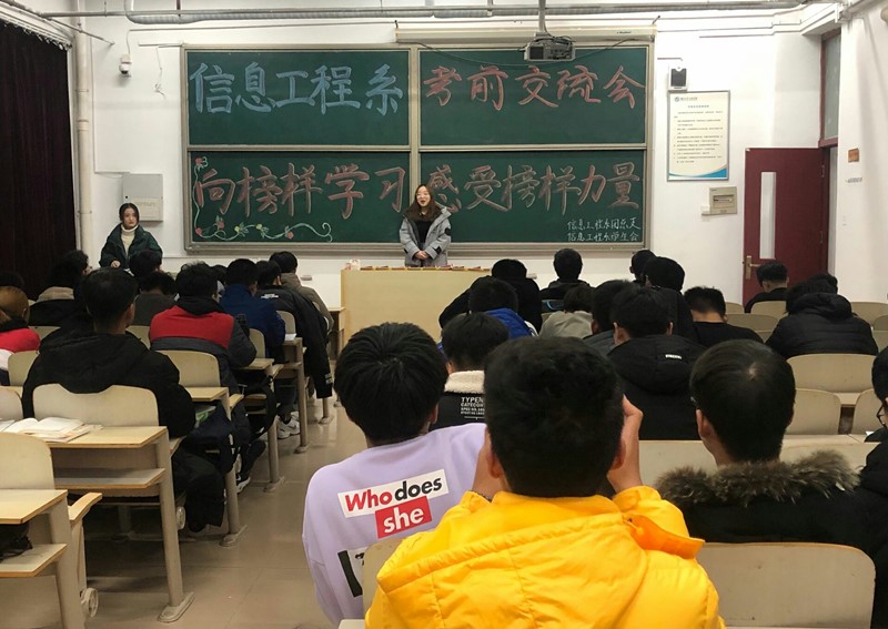 为切实提高学习成绩和效率,缓解备考复习压力,信息工程系于12月3日在一教604、620教室组织开展考前交流会。此次交流会邀请7名成绩优异、学科竞赛获奖学生担任交流嘉宾,18级部分学生干部以及19级全体新生参加本次活动。