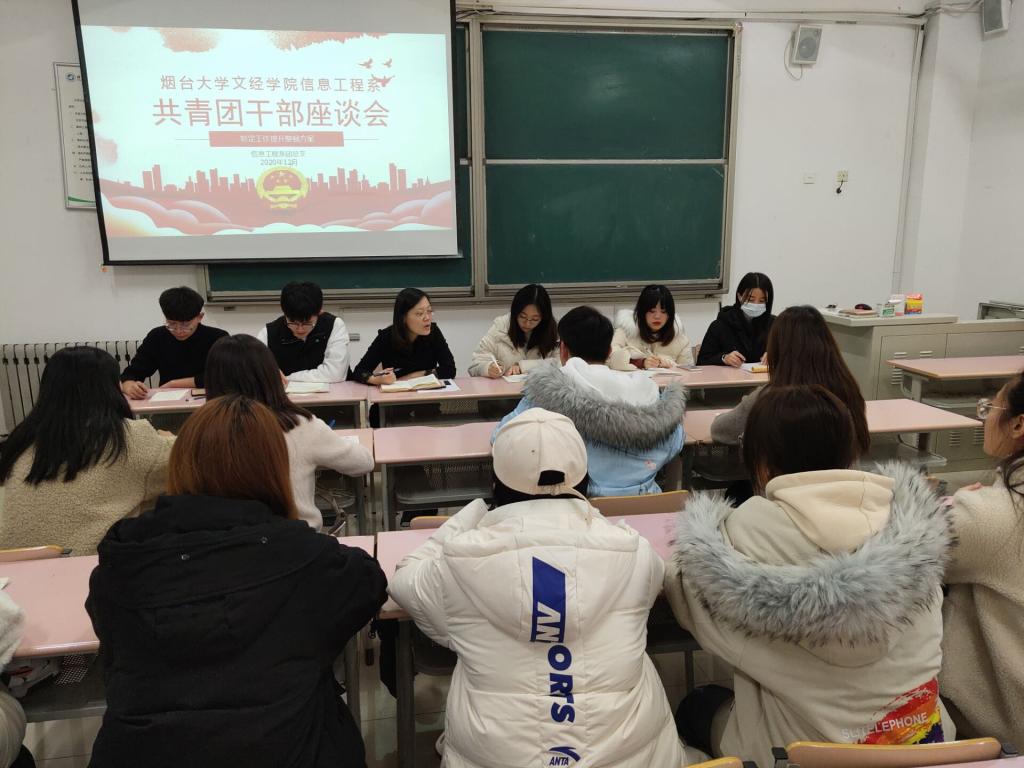为深入学习宣传贯彻党的十九届五中全会精神,全面了解我系共青团工作,不断凝聚共识、统一思想,使我系共青团工作更好地开展,12月8日下午,信息工程系在二教511召开共青团干部座谈会。会议由信息工程系团总支书记祝箐主持,各年级团干部代表参加了会议。