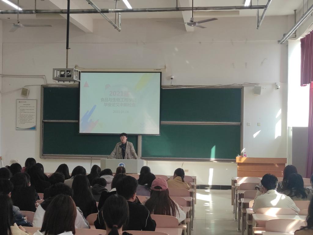 为提高毕业生毕业论文质量及撰写水平,4月8日,食品与生物工程学院于二教109教室举办2021届毕业论文撰写交流会,院长金海珠、副院长高娜、毕业论文指导老师初晓辉和李静、全体2021届本科毕业生参加,初晓辉担任主讲。