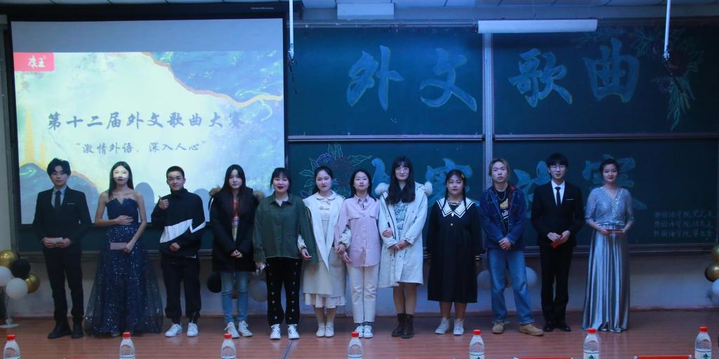 为了丰富学生的课余生活,增强学生的艺术素养,以别样的方式展现外语的魅力,拓展学生学习外语的途径,外国语学院特于4月9日在二教115举办了第十二届外文歌曲大赛决赛。出席此次活动的嘉宾有外国语学院团总支副书记、学生会指导老师董瀚文老师、辅导员魏伟老师、王君老师、王翔宇老师,外国语学院学生会主席张敏睿、副主席李文青、马珊珊、颜丙慧、高勇志、杜元龙,外国语学院团委学生副书记谭靖璇以及各院学生会主席。