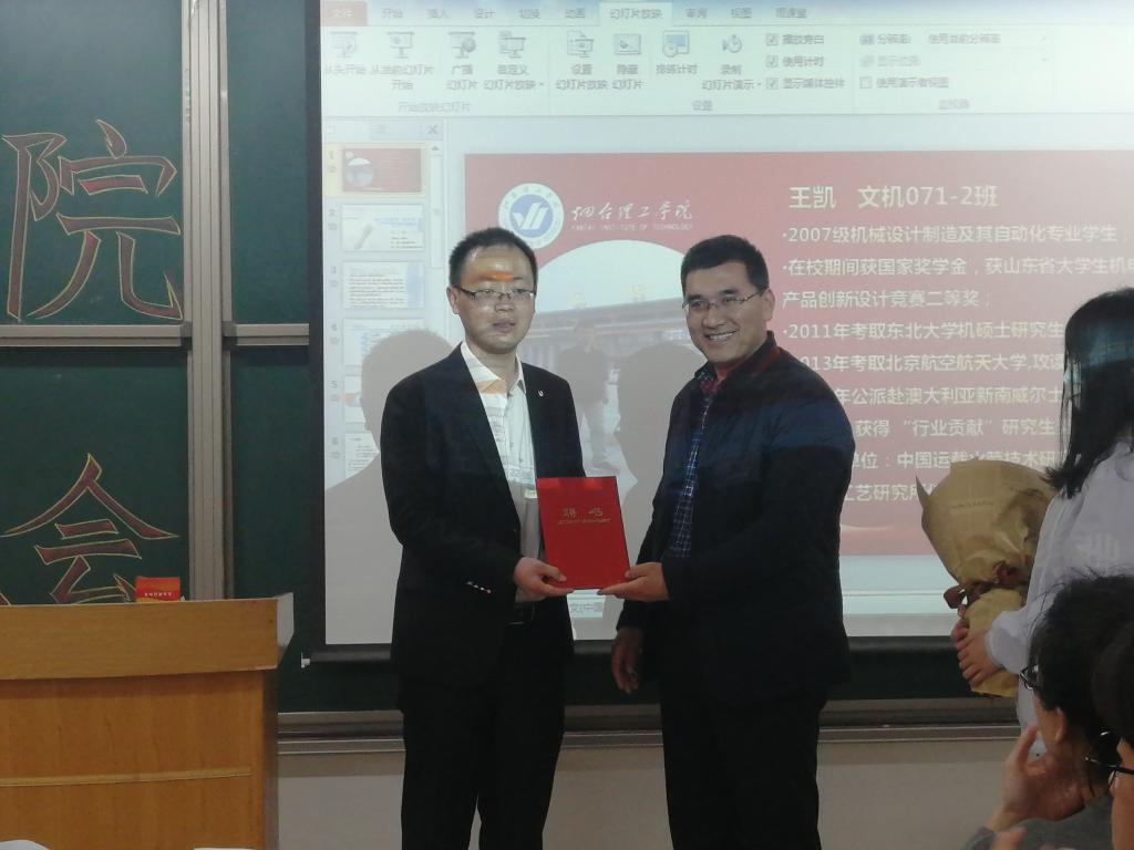 2021年4月17日,我校烟台大学文经学院正式更名为烟台理工学院。在这具有重大意义的一天,我校邀请到了教育界的各类专家学者与知名校友返校一同见证这历史性的一刻。我机电工程学院邀请到了07级的优秀知名校友——王凯同学。王凯同学自从我校毕业后成功考入东北大学研究生,后通过不懈努力成为北京航天航空大学博士。现工作于中国运载火箭技术研究院航天材料及工艺研究所。