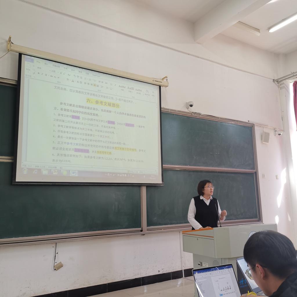 为保证本科生毕业论文质量、规范论文格式,提高论文写作水平,食品与生物工程学院于5月17日下午在二教110召开毕业论文格式指导会。教师李静、初晓辉担任主讲,姜倩倩、秦红玉以及2021届本科毕业生参加本次会议。