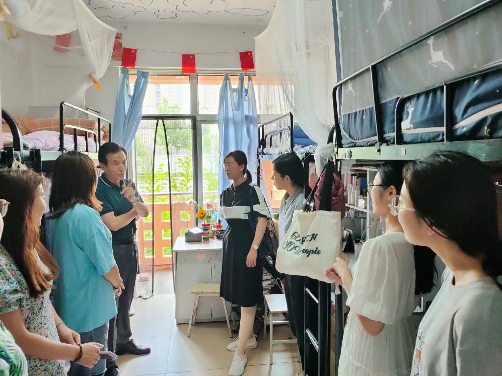 为全方位掌握毕业生在校情况,进一步落实毕业生相关工作部署,保障毕业生安全、平稳离校,6月7日上午10点,食品与生物工程学院院长金海珠、党总支副书记赵蓓、辅导员于小康以及班主任姜倩倩、韩明月、王晓君、秦红玉、王志宏等共同走访毕业生宿舍。