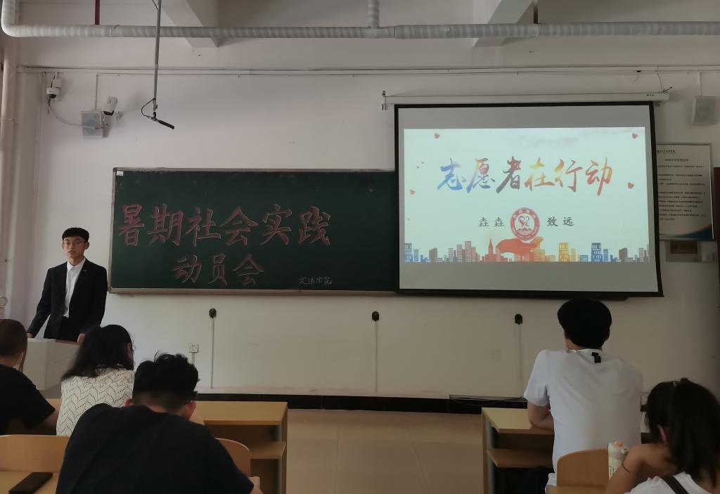 6月11日中午,文法学院于一教118召开暑期社会实践动员会。辛佩恕老师出席,18-20级部分学生代表参加本次活动。