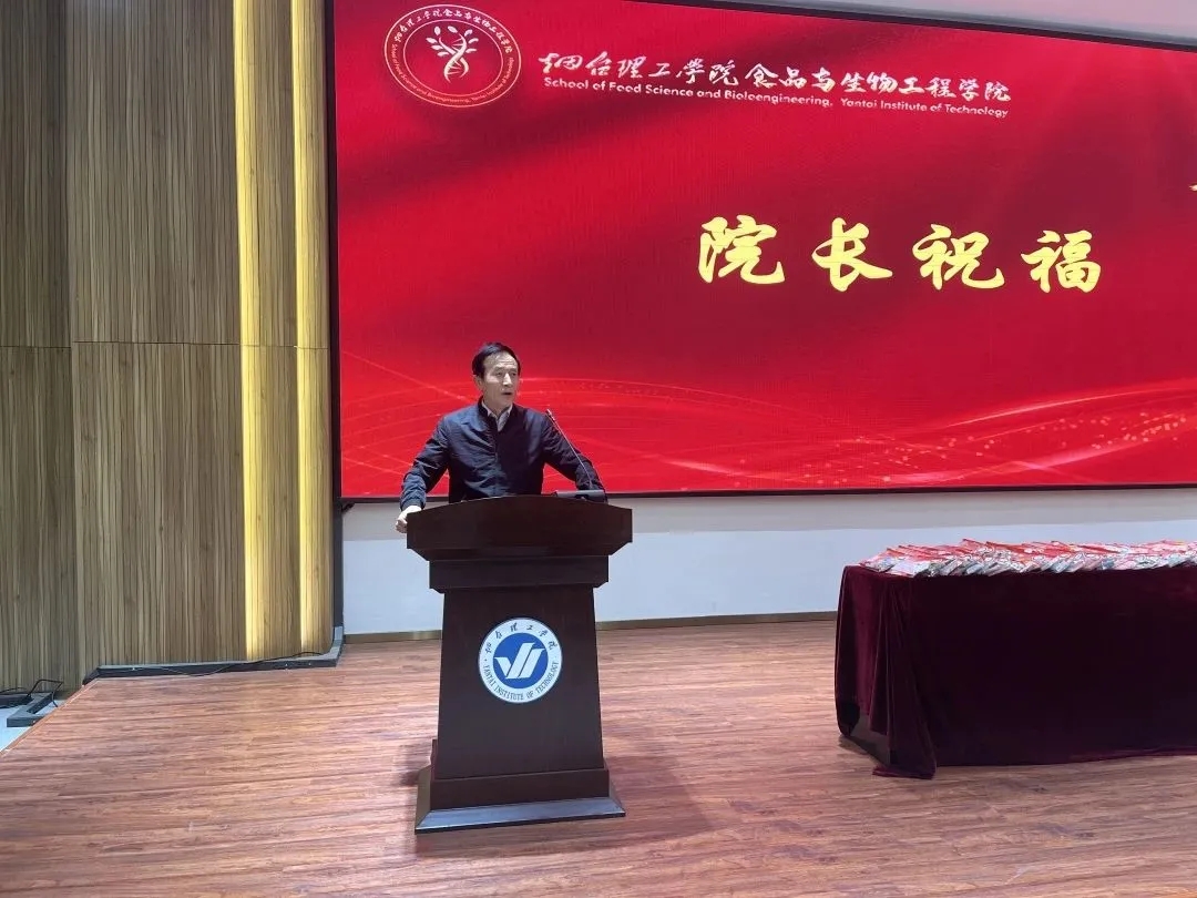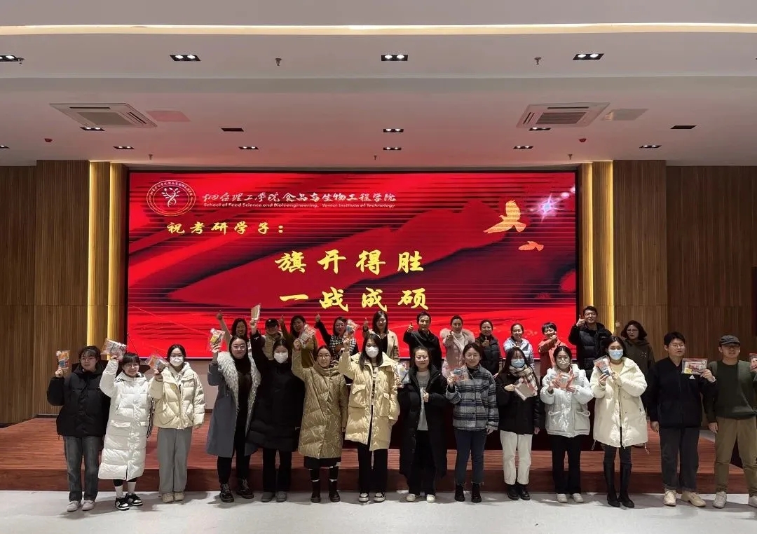 食品与生物工程学院院长金海珠从摆正心态、保持自信、持之以恒等方面鼓励引导考研学子。学院领导、老师为每位考研学子送上“考研加油包”,礼品贴心,祝福动人,关怀真挚,同学们带着满满的祝福背好行囊继续出发,奋力奔赴美好未来!