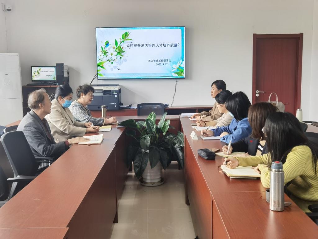 此次教研活动围绕“如何提高酒店管理人才培养质量"展开讨论,各位老师从专业导师制、教师能力提升、实习基地拓展、特色活动举办四个方面进行讨论,各抒己见,群策群力,为培养高质量酒店管理人才建言献策。