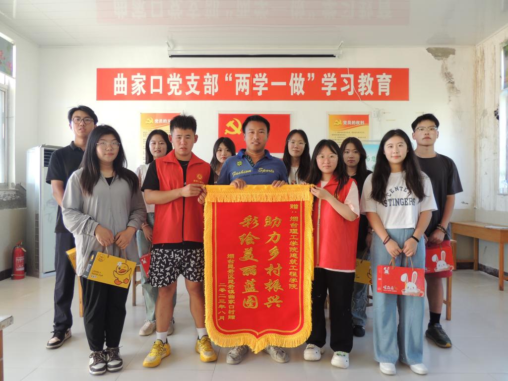 近日,烟台市牟平区昆嵛山曲家口村负责人将一面鲜红的锦旗送到烟台理工学院建筑工程学院,锦旗上印着“彩绘美丽蓝图,助力乡村振兴”,向建筑工程学院团总支指导的“砼心振乡”志愿服务队所做出的贡献,表示衷心的感谢!对建筑工程学院志愿服务表示充分的肯定。