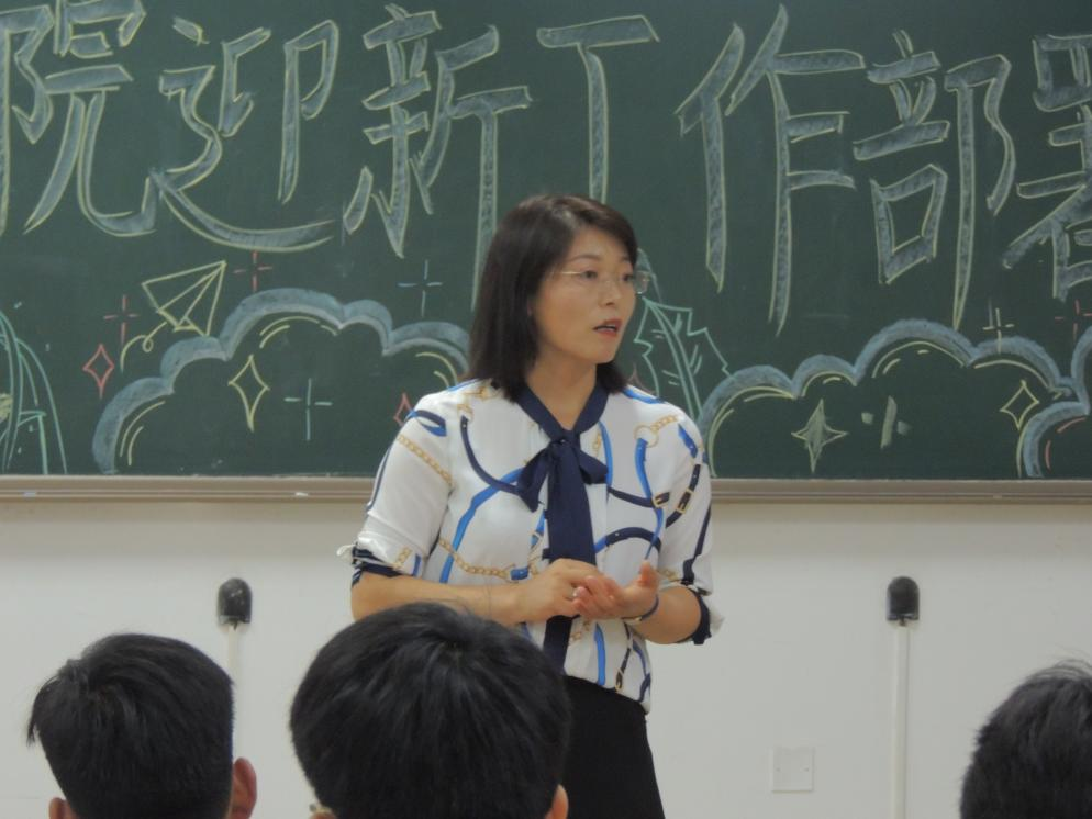 会上,安文静对负责新生报道的迎新工作者进行培训,安老师表示大家要通力合作,相互配合,牢固树立服务意识、把后勤保障的重点工作落实、落细,合力打好新学期第一仗,共同完成开学各项工作,确保新生安全有序入学。