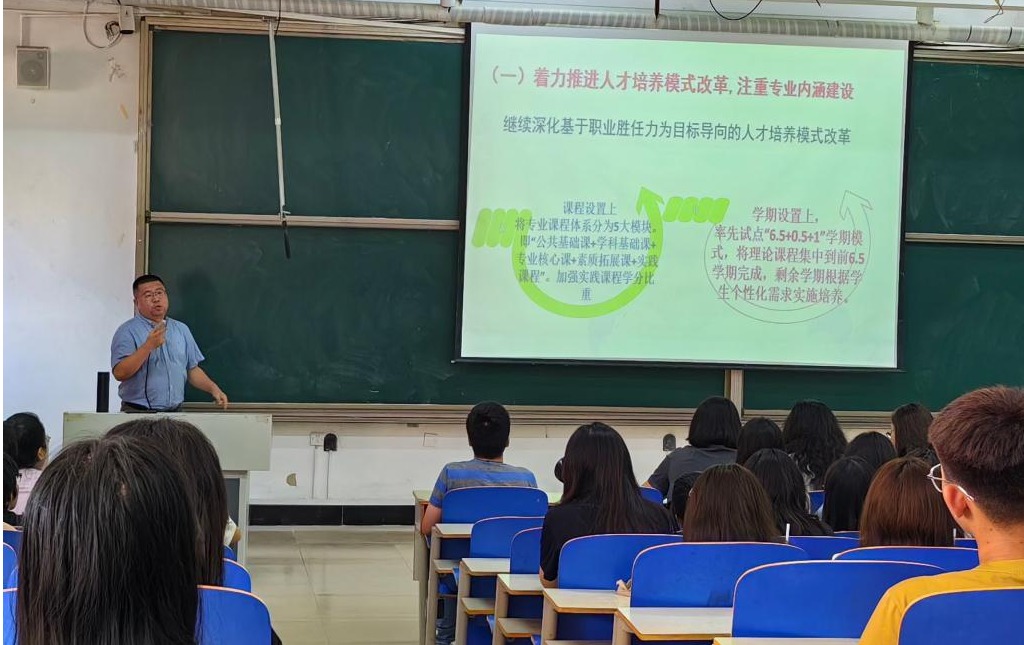 为帮助新生更好地适应大学生活,了解自己的专业设置及未来发展方向,9月3日,经济管理学院分别安排王崇红、孙经纬、刘娜娜、胡翠霞、王媛、张俊六位系部主讲老师,在各个专业教室为2023级新生详细介绍了市场营销、工商管理、跨境电子商务、酒店管理、国际经济与贸易、人力资源管理六大系部各个专业内容,全体2023级新生参加此次讲座。