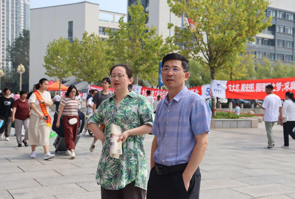 在迎新工作开展的过程中,外国语学院院长刘白玉、党总支副书记赵蓓、团总支书记董瀚文和辅导员郭亚军、徐爽、纪俞舟也来到新生报到处,指导新生工作。为了全面了解新生的情况与需求,志愿者们也在迎新过程中一直与新生班主任保持联系,遇到问题及时解决。外国语学院的师生们都在为迎新工作而忙碌着。