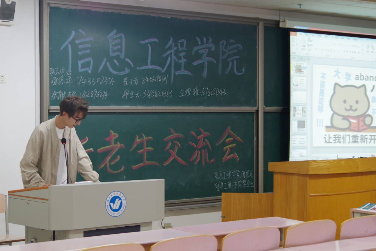 为使新生更好了解大学的学习生活,进一步明确大学规划和学习目标,提高学生干部的实干能力和服务意识,为同学办好事、办实事,加强学风建设,10月26日-29日晚,信息工程学院于二教604、605举办“奋楫扬帆,笃行致远”新老生学习交流会。21级、22级优秀学生代表及23级所有同学到场参加交流。