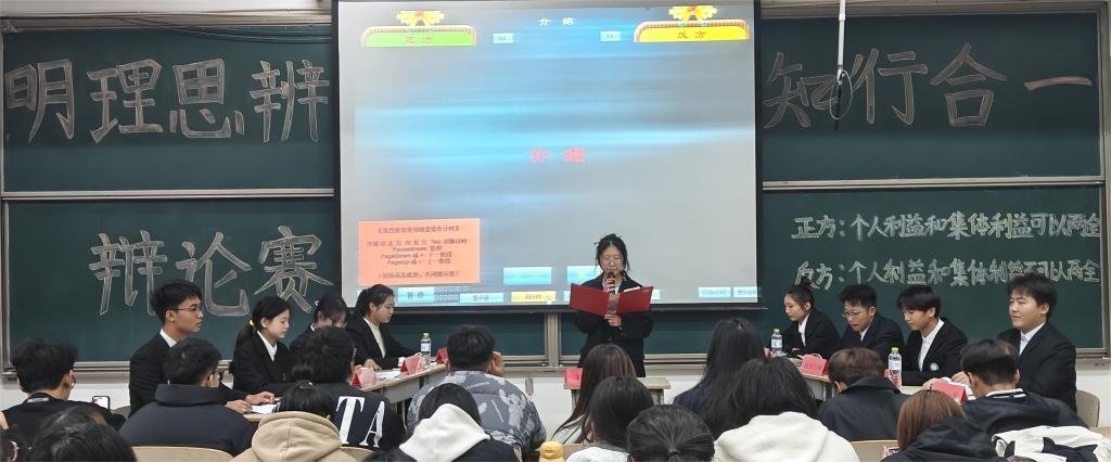 比赛伊始,双方辩手围绕“对于学生干部而言个人利益和集体利益可以/不可以两全”展开激烈的交锋。正反双方你来我往、互不相让,他们各自论说自己的观点,有理有据。在对辩、盘问环节,辩手们举一反三、句句珠玑,以言语承磅礴才情,以思绪显严密逻辑,极富感染力的语言点燃了现场的情绪。最终,评委就辩论赛现场各位辩手的表现,做出了专业的点评并提出中肯的意见,赞扬了个各队的闪光点,也指出了逻辑链不完整等问题,这些点评使在场同学受益匪浅。