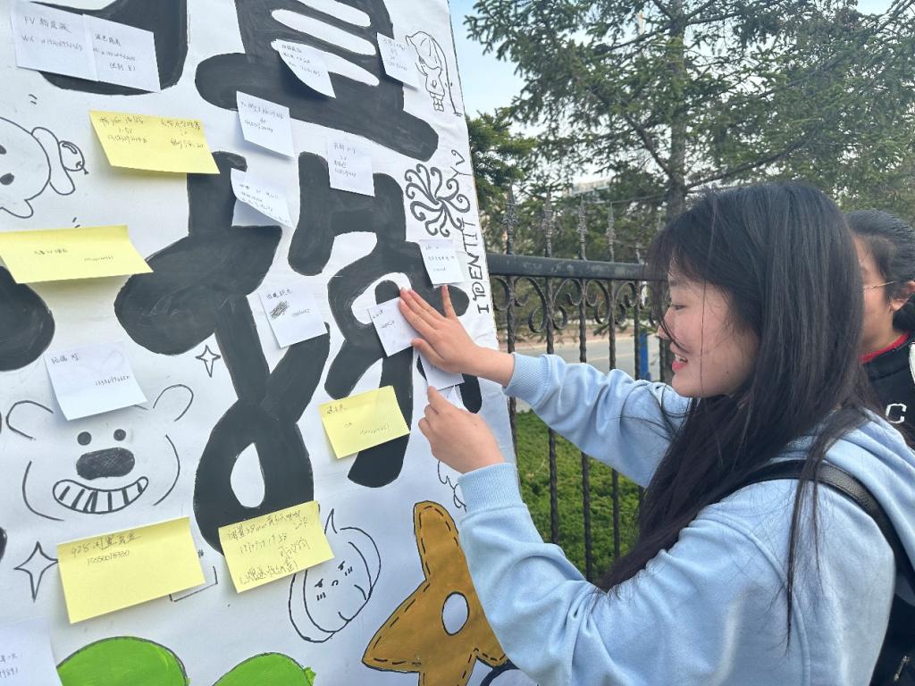 本次活动分为五个主题摊位,分别为“青宝箱”绿色环保宣传区、“青动力”垃圾分类体验区、“青循环”拼图区、“青分享”旧物互换区以及“青绘益”创意绘画区。学生可根据兴趣爱好参加不同的活动,在“青宝箱”绿色环保宣传区,可以通过答题巩固绿色环保知识,答对三题即可获得绘画颜料,在“青绘益”创意环保绘画区共绘环境保护画卷,将自己对环保的想法和创意用鲜艳的色彩展现于画布上。