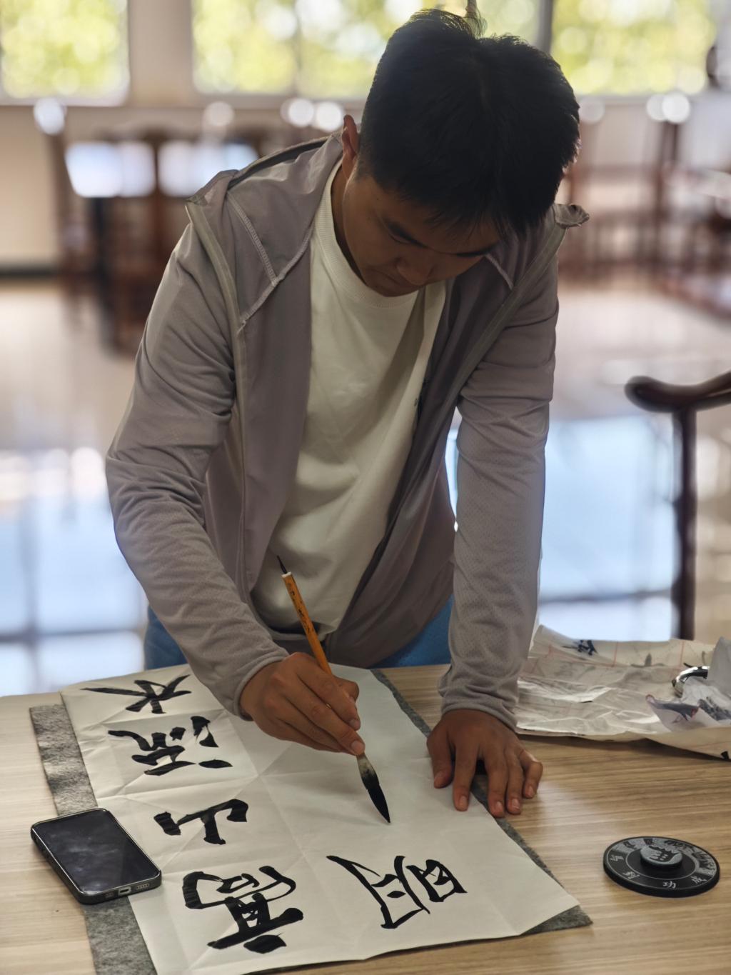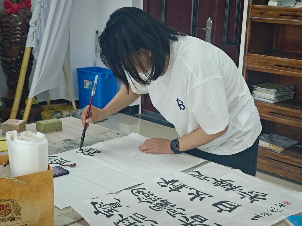 比赛负责人向参赛同学介绍比赛流程、内容要求等,随后参赛者开始进行比赛,他们在纸上挥洒出体现中华优秀文化、爱国情怀以及反映积极向上时代精神的古今诗文、楹联、词语、名言警句等,充分展示了书法艺术的多样性与包容性。现场老师对参赛者的书法作品进行了客观中肯的点评,鼓励他们继续保持对汉字书法的热爱,参赛同学也表示这次比赛不仅为他们提供了一个展示自我、交流学习的平台,也激发了同学们书法的兴趣和热爱,提高了同学们的艺术修养和审美情操。最后,经过大赛的选拔,张润泽荣获比赛一等奖,王浩然、张煜颖荣获比赛二等奖,刘佳怡、张萌方、高泽宇荣获比赛三等奖。