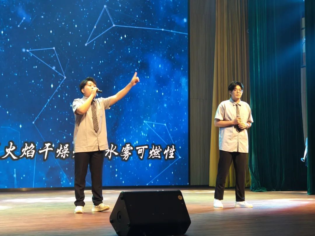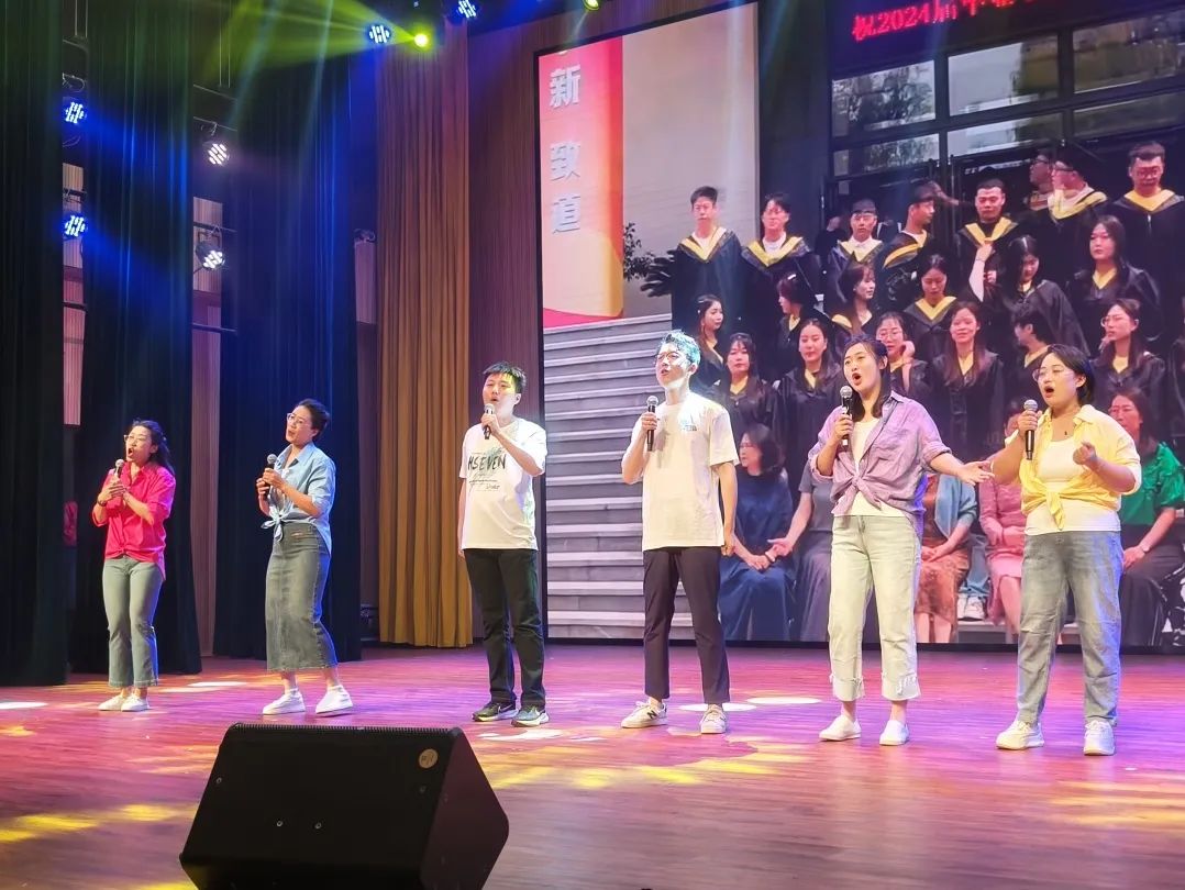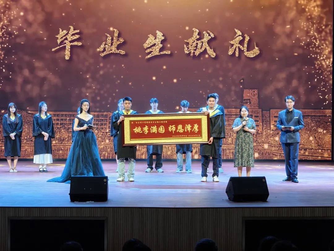 似水流年,灼灼风华。晚会由一场精彩的开场舞《DRAMA》拉开了序幕,舞者们以曼妙的舞姿和激情四溢的表演,瞬间点燃了现场氛围。一首深情的歌曲《逆光》唱出了毕业生们面对未来挑战的决心与勇气,歌声悠扬,仿佛将每一个人的心弦都轻轻拨动,引起了在场观众的共鸣。化学版歌曲串烧则以独特的方式展现了食品与生物工程学院的专业特色,既富有创意又充满趣味。