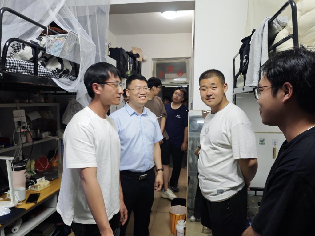 为深入了解毕业生的生活状况和未来规划,营造温馨的校园氛围,文法学院党总支书记曹钊庆及辅导员、毕业班班主任一行,自6月13号至17号连续几日走访毕业生宿舍,与即将离开校园的毕业学子们进行了面对面的交流并送上美好的祝愿。