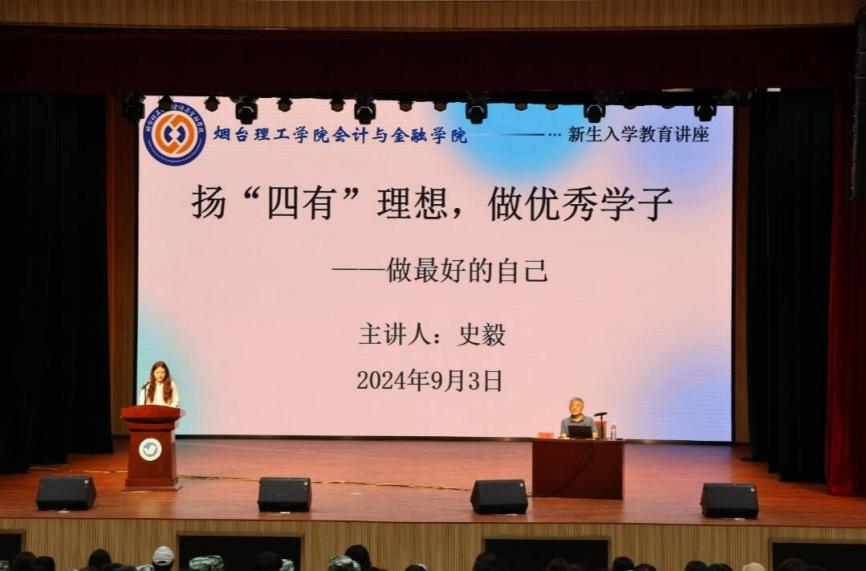 为助力新生明确大学规划,更好的适应大学生活,9月3日晚,会计与金融学院于综合楼一楼报告厅举办以“扬四有理想,做优秀学子”为主题的新生入学教育讲座,引导新生做最好的自己。本次讲座邀请基础教学部教师史毅担任主讲人,2024级565名新生参加本次讲座。