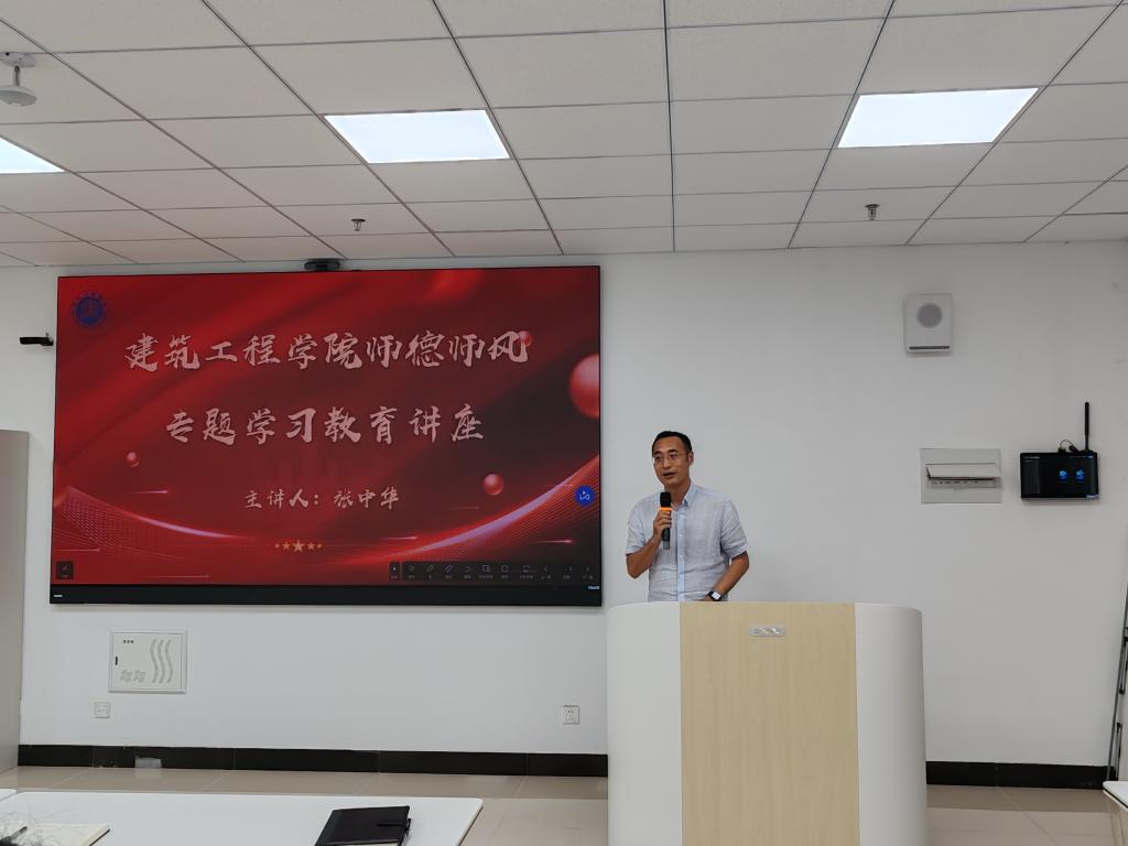 副校长张中华围绕师德师风的重要性、当前存在的问题、未来发展方向等方面进行了深入阐述。他从课程育人、实践育人的角度诠释了“四有”好老师的内涵,体现了我校教师为党育人为国育才的初心使命。学院师德师风建设工作要进一步压实责任、筑牢底线推进教师思想政治教育、师德师风建设、教师职业发展。勿以善小而不为,勿以恶小而为之,大力弘扬教育家精神,争做时代教育先锋楷模。