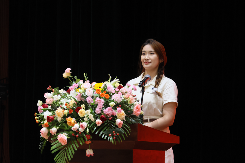 教师代表隋安琪表达了对新生们的热烈欢迎和殷切期望,在新生开启大学生活之际,结合自己多年来的教学经验,向新生分享四个大学生活关键词:主动,为自己插上一双追逐梦想的翅膀;自省与自主选择,在追逐梦想的过程中要想不迷失方向;持续拼搏的精神,奋斗从来没有终点,也不应当停歇:使命,个人的成长要担负起社会的使命。